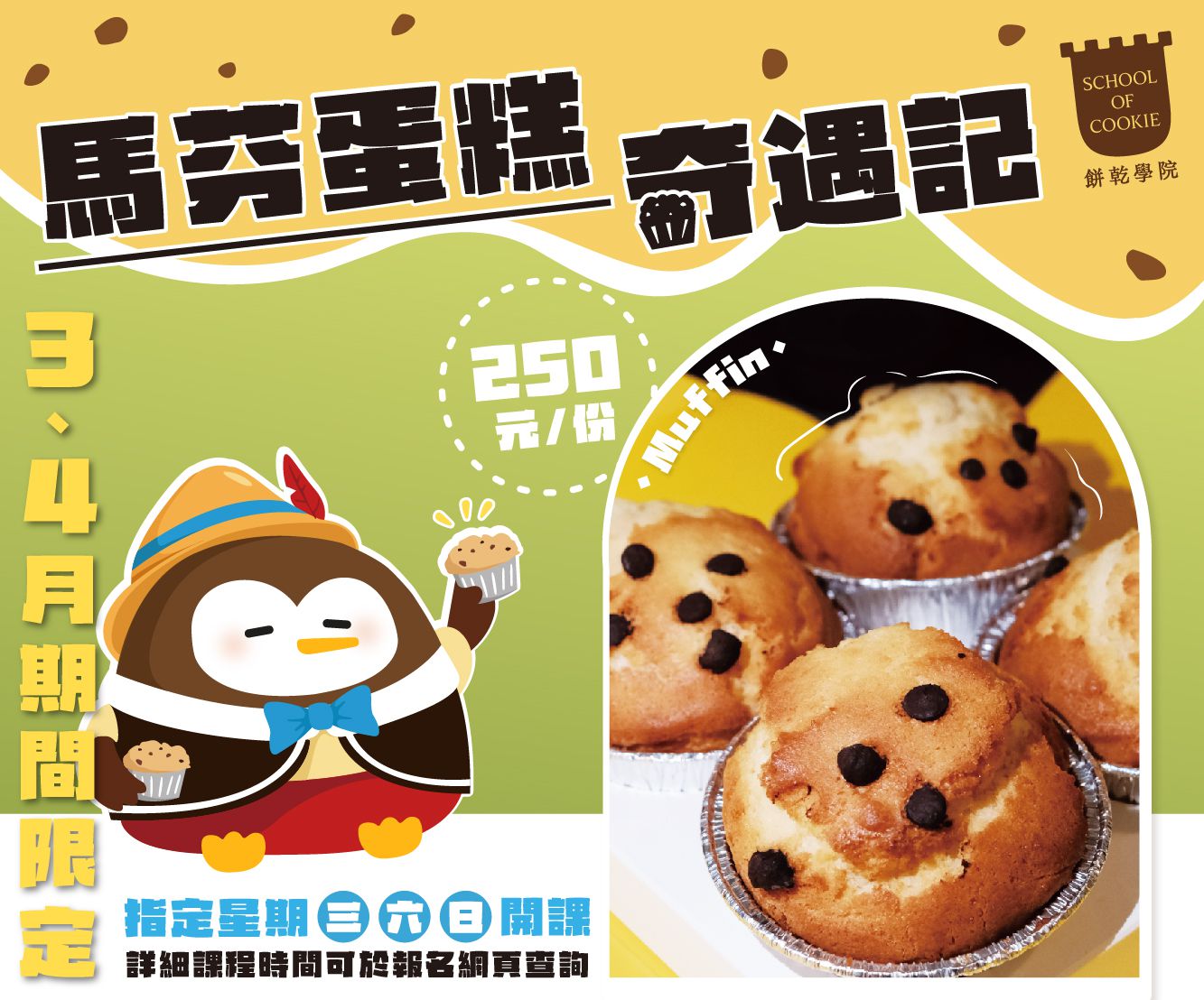 全新DIY馬芬蛋糕課程來啦!外酥內軟綿綿密密的小蛋糕,趕快來玩♥ 每份250元、帶走4顆、3-4月限定時間限量開課!