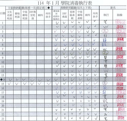 5.廁所每日以200ppm次氯酸鈉消毒。