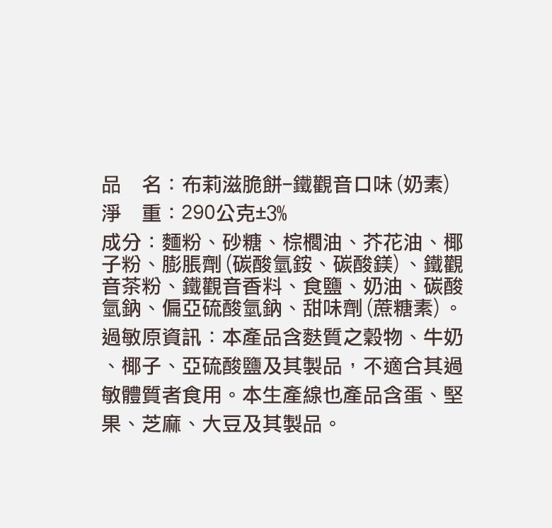 布莉滋脆餅-鐵觀音茶餅 290g+椰子小圓餅串串包25g*2組合