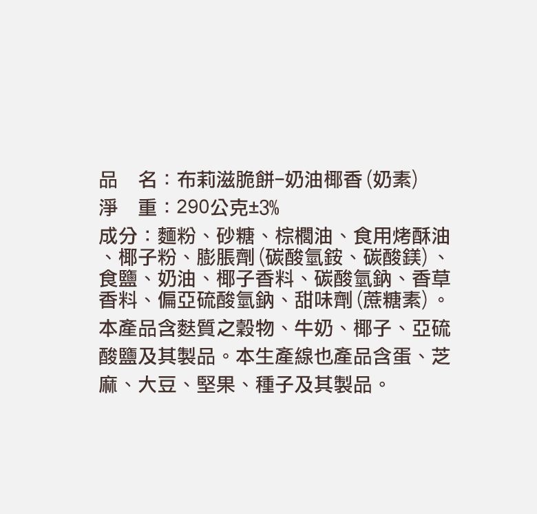布莉滋脆餅-奶油椰香 290g+椰子小圓餅串串包25g*2組合