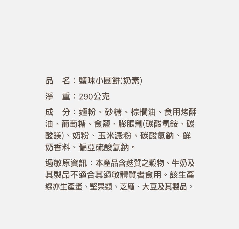 鹽味小圓餅 290g+椰子小圓餅串串包25g*2組合