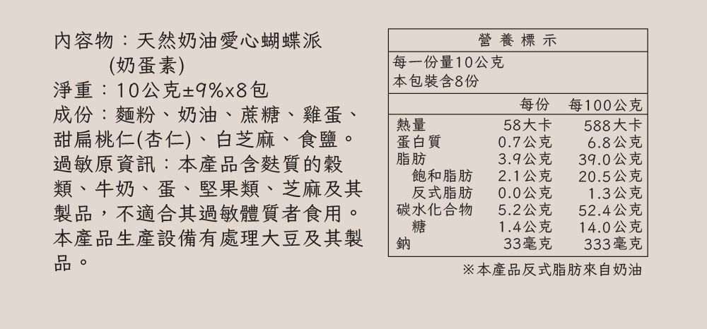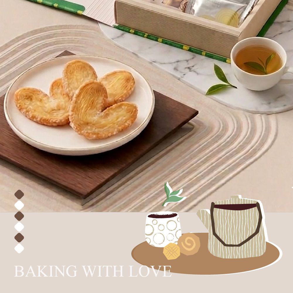 ✔️天然奶油蝴蝶派│簡單透明的成分配方,經由師傅精巧的手藝、多層次的延壓摺疊,完美展現酥脆與奶香的派。