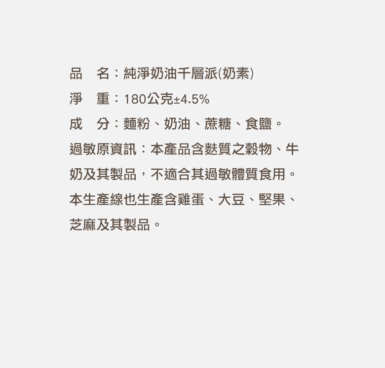 淨重:180公克±4.5%|產地:臺灣|保存期限:6個月