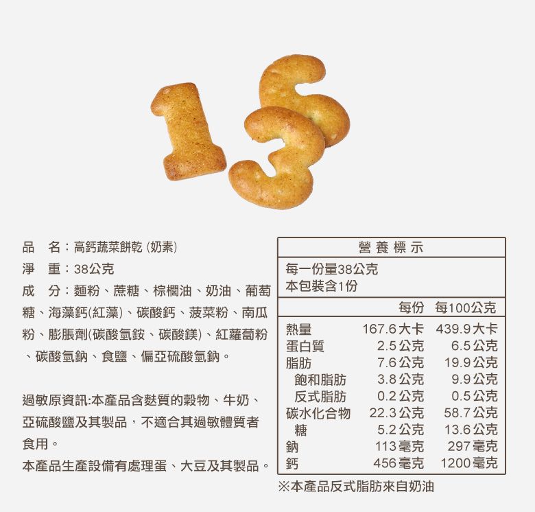 擁有豐富的蔬菜纖維,搭配數字造型酥鬆餅體,好吃無負擔的美味選擇。