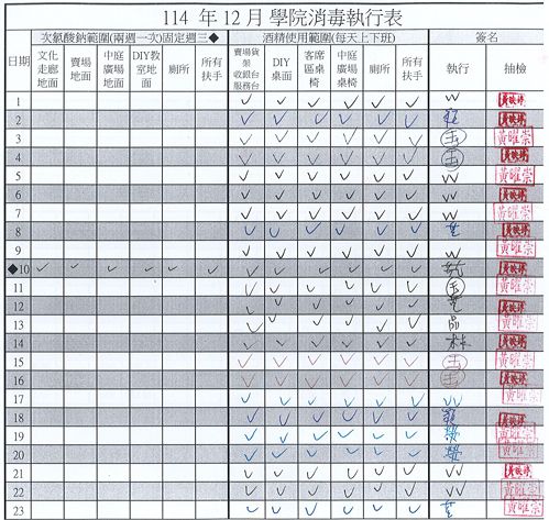 5.廁所每日以200ppm次氯酸鈉消毒。