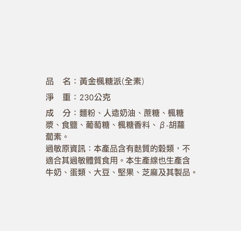 黃金楓糖派 230g
