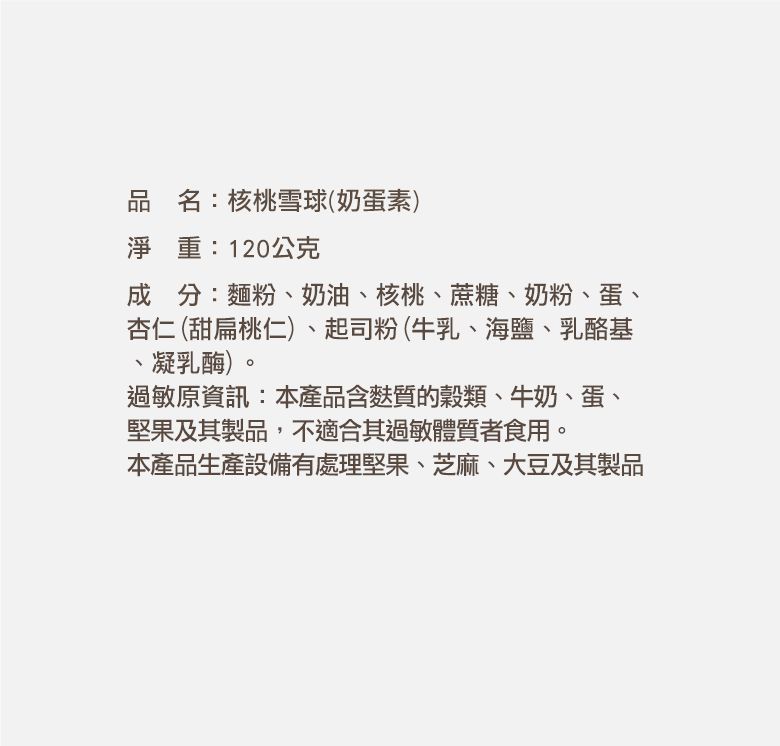 麵團混和著核桃杏仁成球狀烘烤,麵粉奶油香襯堅果滋味,滾上雪白的綿密糖粉,甜蜜的濃香滾滾而來!