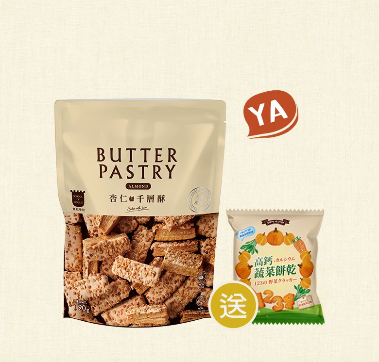 杏仁千層酥 190g (送高鈣蔬菜餅38gx1包)【任選買四送一行李吊牌】