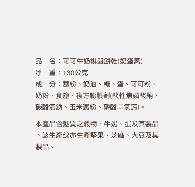 可可牛奶棋盤餅乾135g